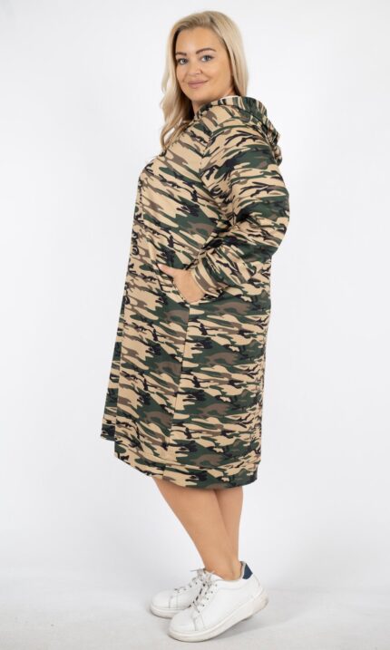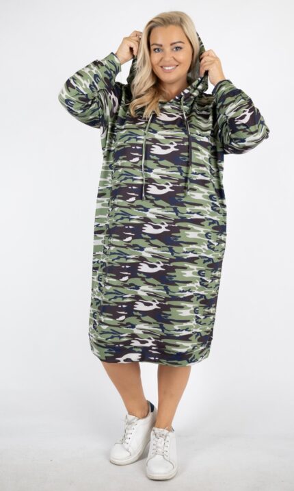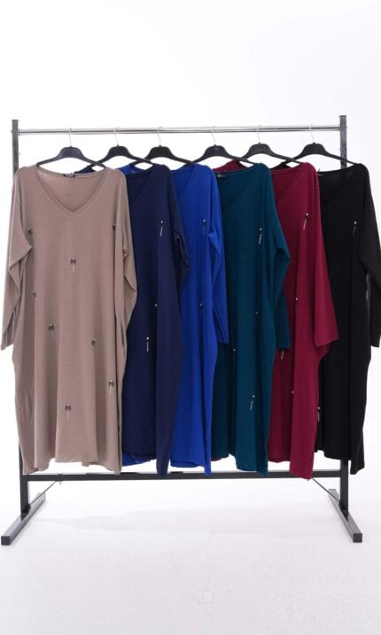 Sukienka nie posiada kieszeni po bokach. Model jest jednorozmiarowy i idealnie sprawdzi się dla osób, które lubią luźny, wygodny krój.