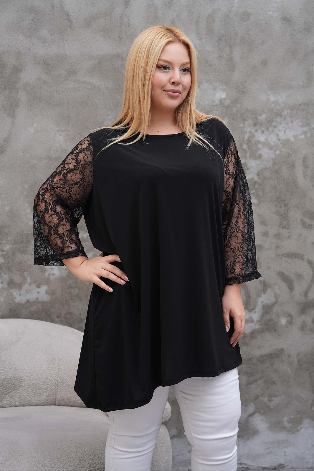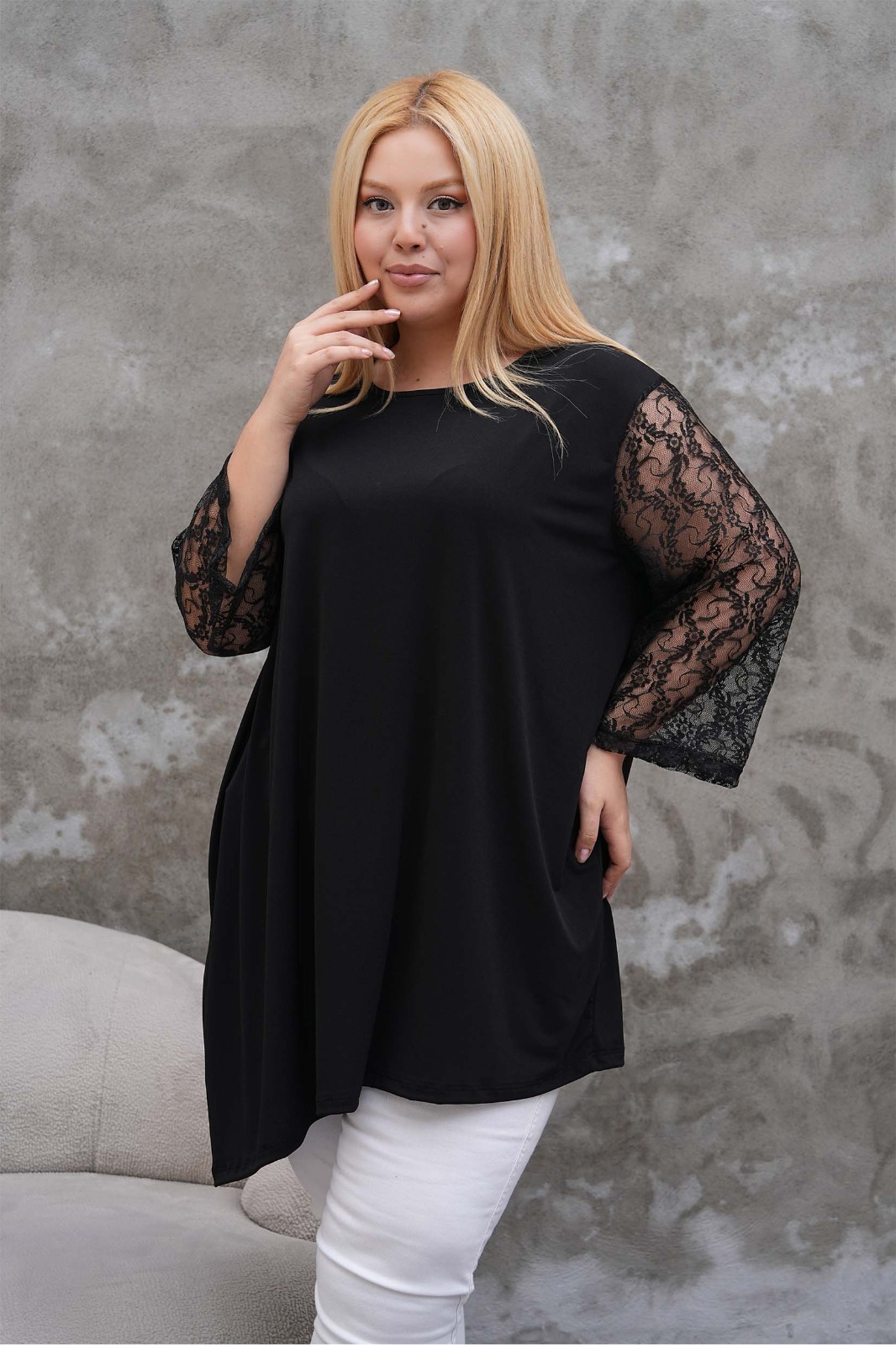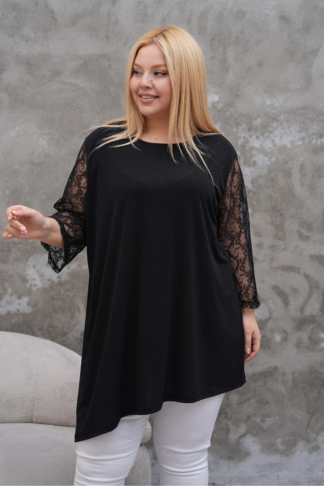 Tunika asymetryczna koronkowa długi rękaw